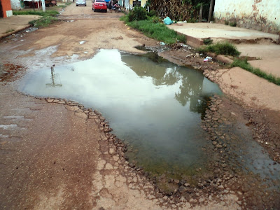 Crateras enormes chegam a impedir o tráfego de veículos no cruzamento das Ruas Epitácio Cafeteira e 39. Moradores afirmam que há pouco mais de um mês, depois de várias reclamações em rádio e aqui no blog, a Prefeitura chegou a enviar uma máquina para fazer o conserto das ruas. “A gente pensava que finalmente esses problemas seriam resolvidos, com a colocação de asfalto. A máquina só fez a raspagem, colocaram algumas carradas de barro e depois abandonaram tudo de novo. As chuvas estão chegando e todo esse material vai ser levados pelas águas. É muito falta de consideração com os moradores do Jardim São Cristóvão I. A gente não pode nem ficar na calçada que os carros passam jogando lama. É um absurdo!”, desabafa uma moradora da Rua 39.