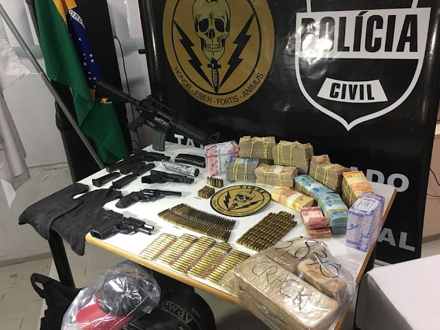 estado, os policiais apreenderam armas, coletes a prova de balas, balaclavas,