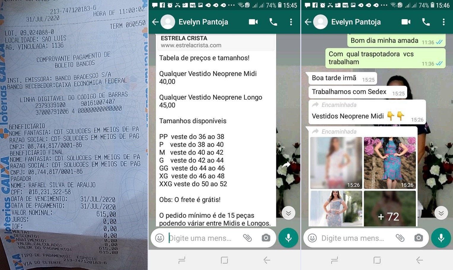 e eles não enviaram as roupas. E bloquearam. O whatsApp deles é (85) 98199-2305”,
