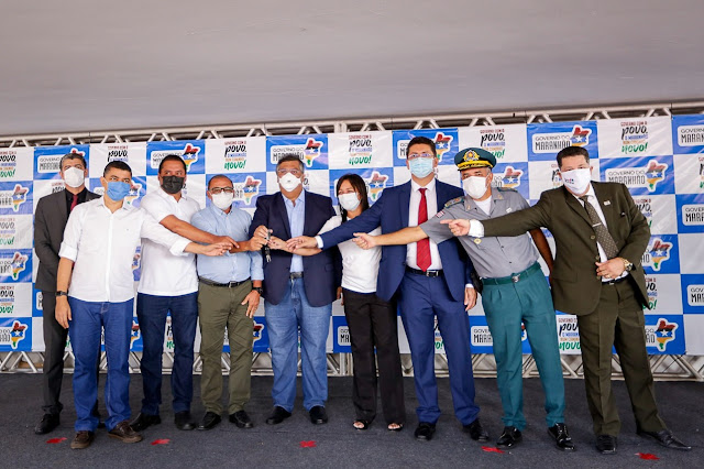 O governador Flávio Dino entregou 122 novas viaturas, que serão distribuídas às Polícias Militar e Civil, para reforço da segurança pública em 63 cidades do Maranhão. A perícia técnica e Centro Tático Aéreo (CTA) são outros setores da segurança que também receberam viaturas.