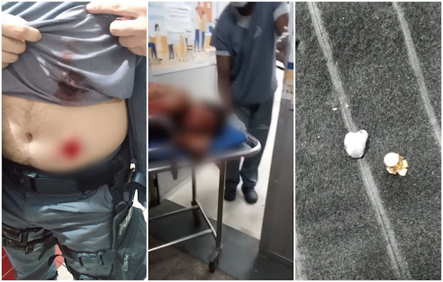 O soldado Tadeu foi atingido no abdômen, mas estava protegido pelo colete balístico. Ele foi levado ao hospital com uma lesão superficial.